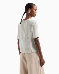PRINTED SILK TRIPLE-GEORGETTE CREW-NECK BLOUSE