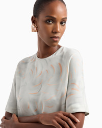 Crew-neck blouse made of triple silk georgette, enlivened by the urban tiger print, a recurring theme of the collection. With short sleeves and a zip fastening on the back, this style lends itself to numerous combinations with the trousers and jackets from the collection. Crew neck Short sleeves Back zip closure Unlined Made in Italy Product Code: GW000790TE14838F8079