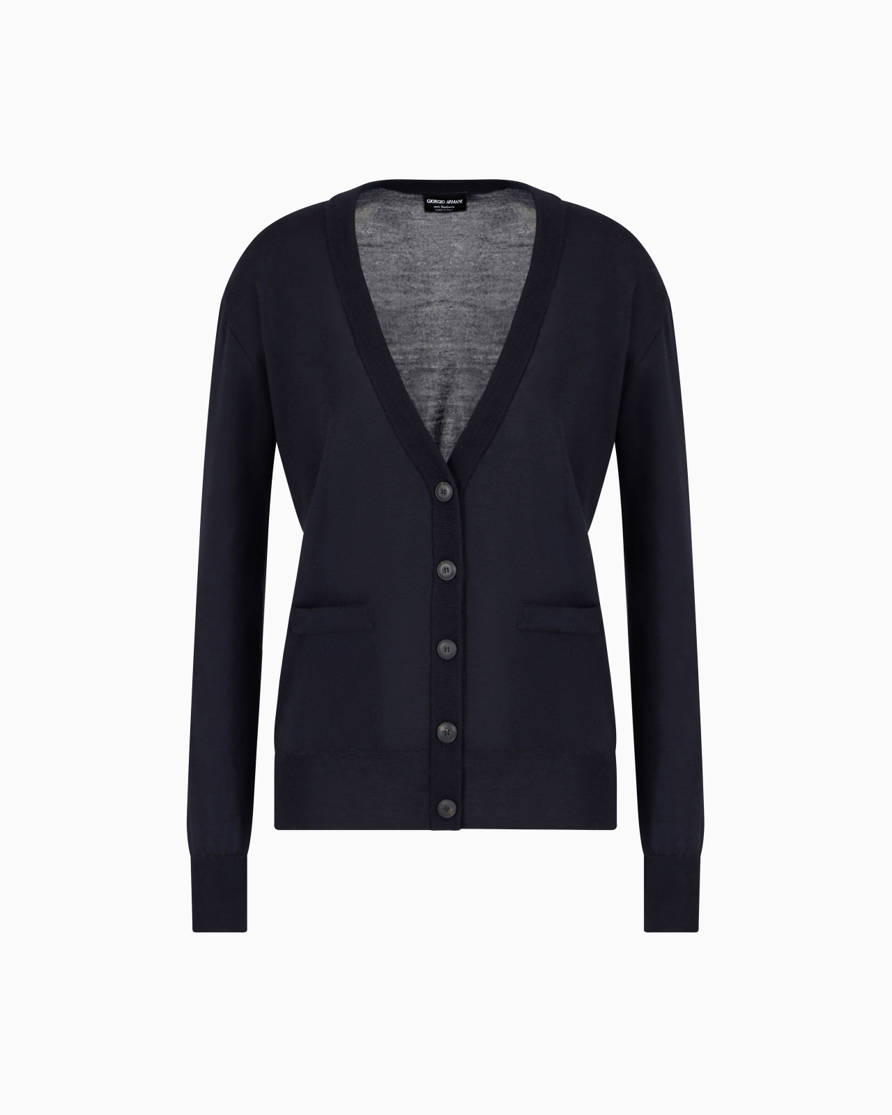 Long slim-fit cardigan made of pure cashmere with an extremely soft and warm handfeel. The style is distinguished by a deep V-neck, six-button closure and two small front pockets. A versatile and essential womenswear item, perfect with trousers or skirts. Product Code: 8NAEA1AMB1Z1UBSG Details Composition 100% Cashmere Fineness: 18 Deep V neck Six-button closure Two patch pockets Ribbed hem and cuffs Made in Italy