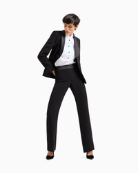 The classic men’s tuxedo takes on a seductive and feminine style in this pure silk suit. Single-breasted, slim-fit and tone-colour fabric jacket with large lapels. The relaxed, flared-cut trousers have stitched pockets. Product Code: 8CHAT001T00EV1UC99 Details Composition 100% Silk Tuxedo composed of: Single-breasted jacket Single-button closure Satin shawl-lapel collar Single-button cuffs Two welt pockets Straight trousers with satin waistband and side zip fastening Made in Italy Fitting The model is 178 cm tall and is wearing size 38/S