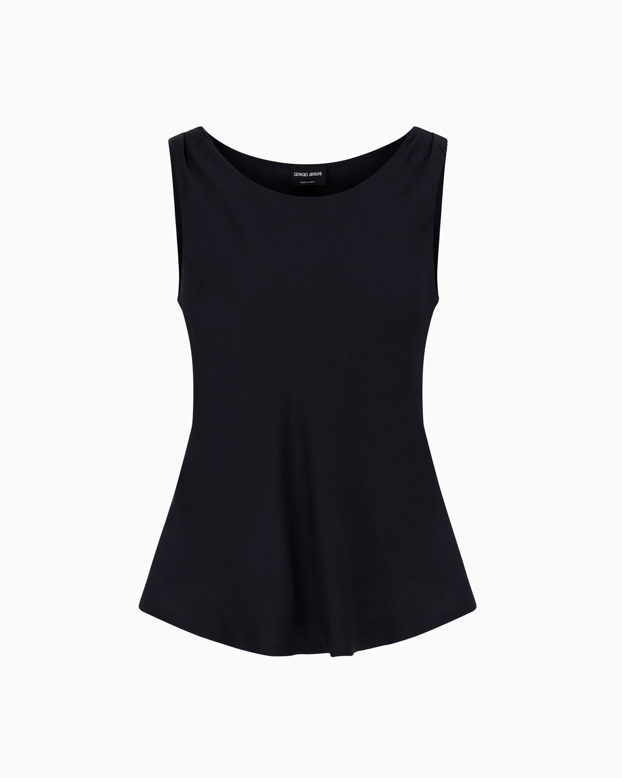 Minimalist shape, refined fabric. A crew-neck top with classic, simple lines, made of luxurious pure silk. Product Code: 8CHCKZ30TZ1361UC99 Details Composition 100% Silk Crew neck Sleeveless Made in Italy Fitting The model is 178 cm tall and is wearing size 38/S