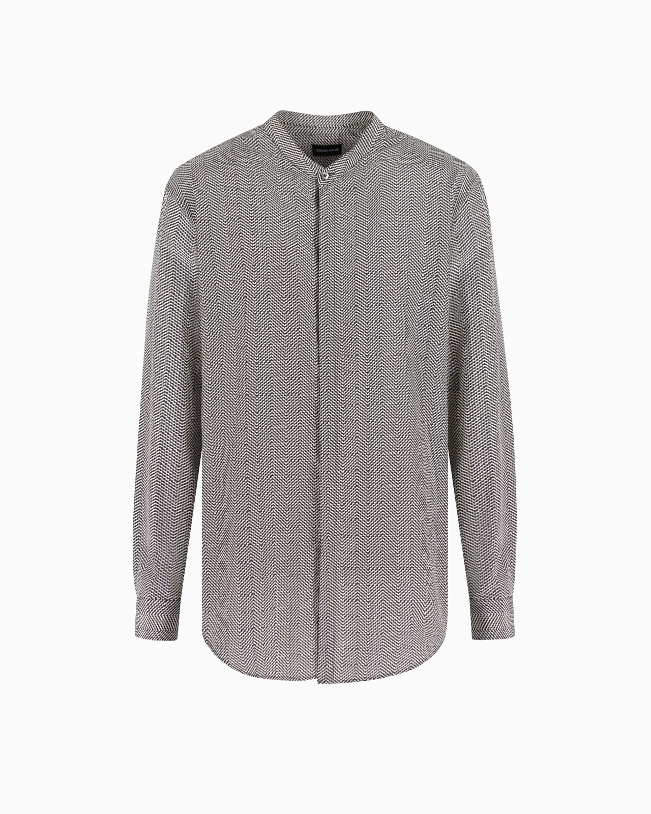 Regular-fit shirt made of silk and cotton and embellished with a contrasting chevron print. This garment features an iconic guru collar, mother-of-pearl buttons and a back yoke. A refined item that complements many looks. Regular fit Guru collar Front fastening with mother-of-pearl effect buttons Button cuffs Back yoke Made in Italy Product Code: GM001584TE14686MC023