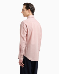 Regular-fit cotton seersucker shirt with a light, fresh feel. The style features a small collar with customised stays, a back yoke, French seams and mother-of-pearl buttons. Regular fit Shirt with small pointed collar with metal stays Long sleeves Mother-of-pearl logo button closure Back yoke Made in Italy Product Code: GM000080TE11186U4224