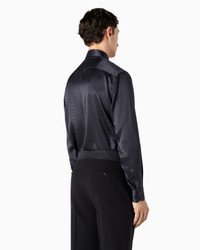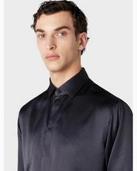 Regular-fit shirt made of luxurious silk, embellished with a geometric micro-pattern print. The style is defined by its French collar with stays, back yoke and mother-of-pearl buttons. A piece designed for evening wear, a must-have addition for the wardrobe of the elegant man. Product Code: 3WGCC08GT04NC1FBW6 Details Composition 100% Mulberry silk Regular fit Classic French collar with collar stays Back yoke Back darts Fastened with mother-of-pearl buttons French seams Made in Italy Fitting The model is 188 cm tall and is wearing size 40 Italian Size