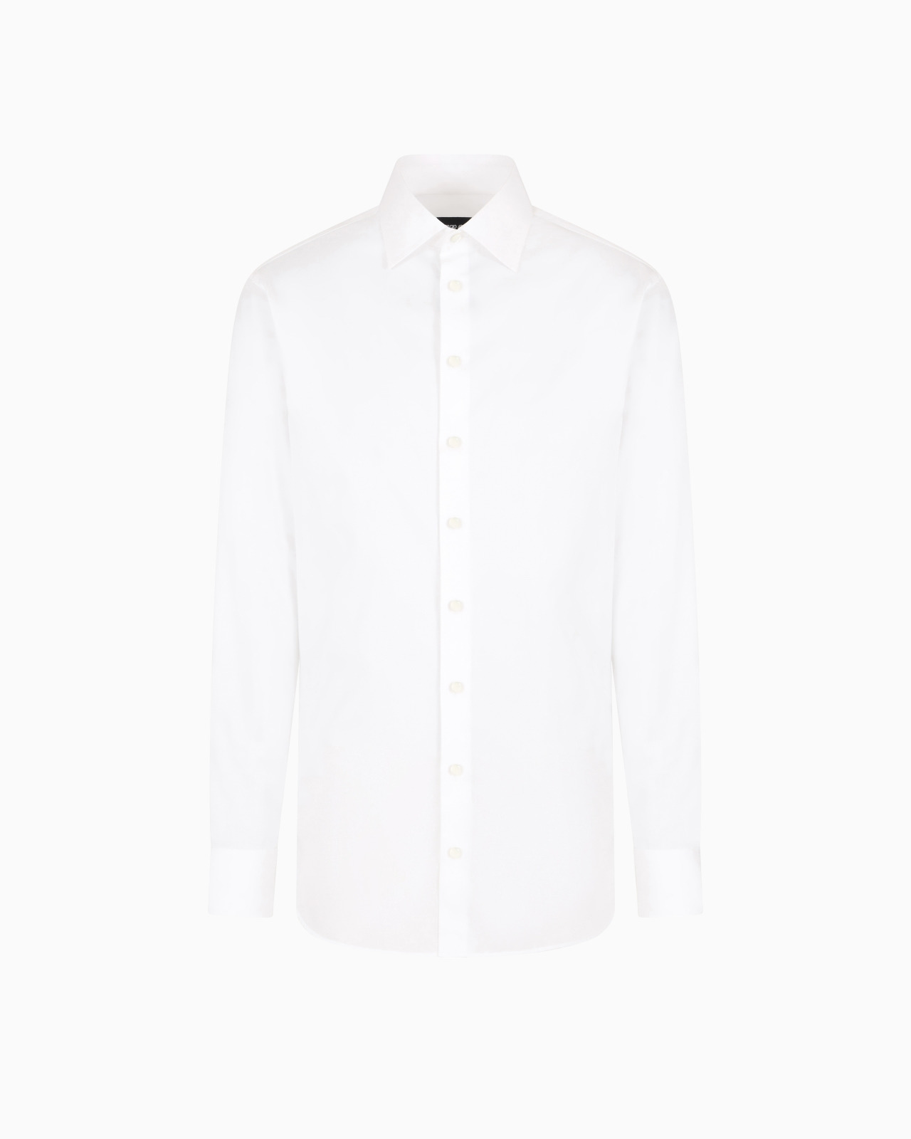 An elegant shirt made from pure cotton yarn, enhanced by a subtle shiny effect. The regular-fit style stands out for the attention paid to every detail: the French seams, the side stitching, the double cuffs that can be used with cufflinks and the collar-stay pockets made of the same fabric. A staple in every elegant man’s wardrobe that exudes the unmistakable style of Giorgio Armani. Product Code: 9SGCCZD1TZ2581U0BN Details Composition 100% Cotton Regular fit French collar with collar stays Double cuffs Fastened with mother-of-pearl buttons French seams Hip gusset Stay holder in colour-matched fabric Made in Italy Fitting The model is 188 cm tall and is wearing size 40