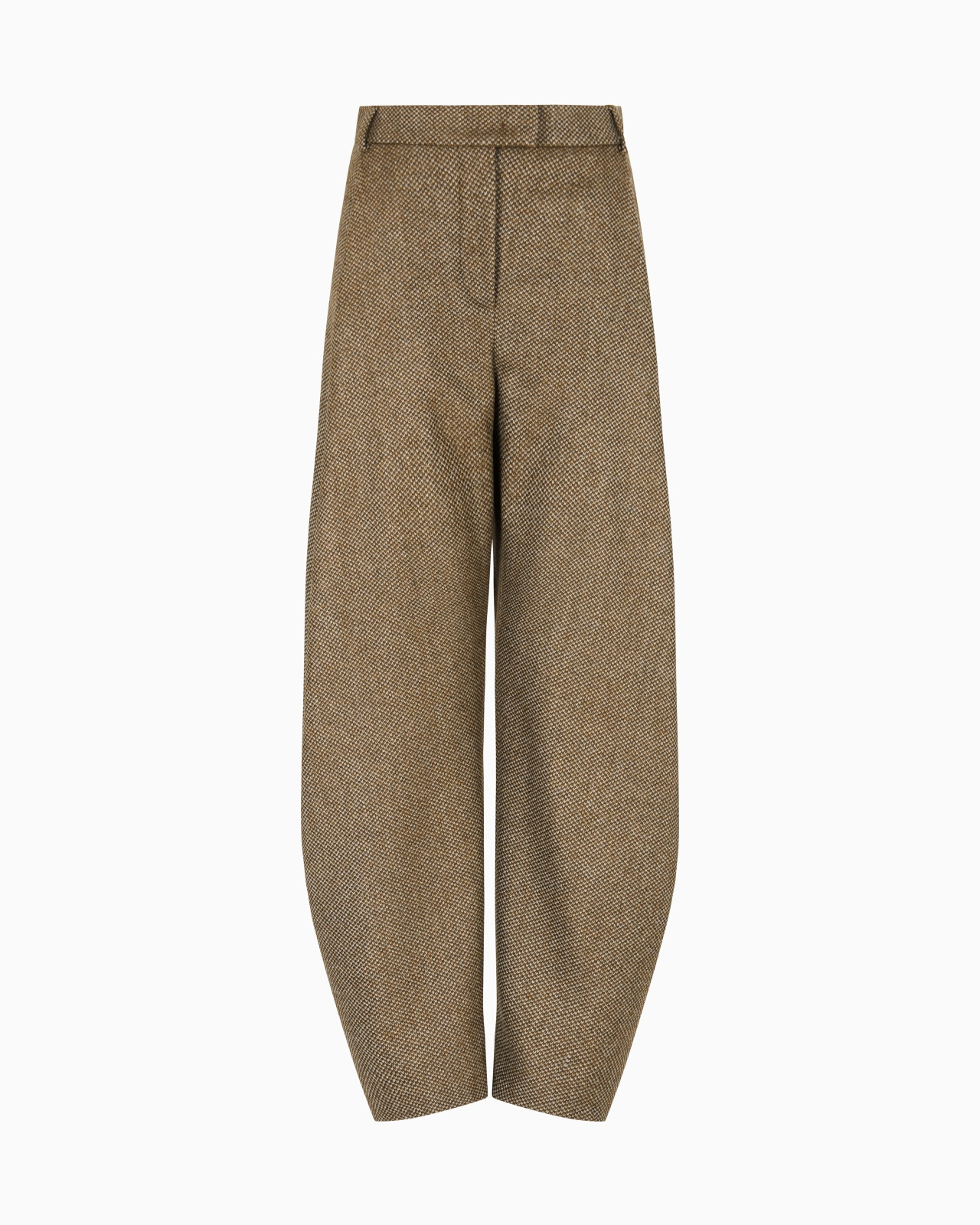 Relaxed-fit, roomy volumes for these distinctive trousers made from virgin wool and cashmere with an unusual knit effect. The style, with a waistband with belt loops, side pockets and a narrower hem, can be paired with the collection's shirts and jackets to create a look that is both casual and chic. The piece is part of the New Normal selection, an offering that reinterprets the brand’s archive looks with a modern twist. Pieces in elongated and fluid shapes and with an androgynous flavour dress the feminine silhouette with elegance for day-to-night looks. This season it comes in a natural colour palette animated by a series of chevron motif and houndstooth shapes, a clear reinterpretation of pieces "stolen" from the male wardrobe with a feminine twist. Single front pleat style Waistband with belt loops Zip-and-hook closure Two side pockets Narrower hem Unlined Length: 100 cm finished style Made in Italy Product Code: GW001568TE16708M6003