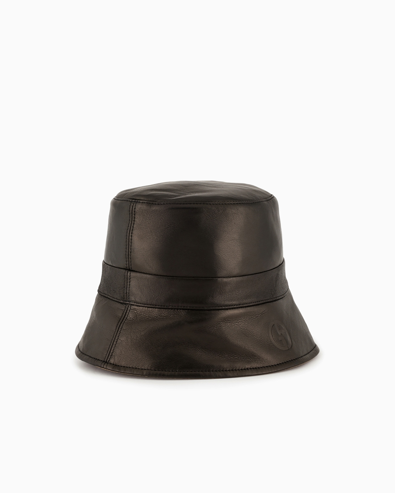 Special cloche hat made of glove-quality nappa leather, customised with an embossed GA logo. The fully reversible style with contrasting Lyocell-blend interior lends itself to different occasions, adapting to different looks. Product Code: 7973373F511100020 Details Composition 86% Lyocell 14% Polyester Lyocell-blend interior with embroidered GA logo Embossed GA logo on the outside Made in Italy