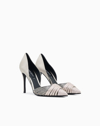 Sophisticated pointed-toe court shoes featuring small, interwoven strips of two-tone satin webbing on the upper, illuminated by matching heat-sealed rhinestones. A feminine, sophisticated offering that will elegantly complete evening looks for special occasions. Pointed toes Two-tone satin webbing Heat-adhesive rhinestones applied to the satin webbing Leather soles with rubber toe Covered heel Heel height: 9.5 cm Made in Italy Product Code: GW001674AF20743M1252