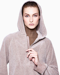 Hooded sweatshirt made of ribbed chenille jersey, with relaxed, enveloping lines. The style, with a 3/4 zip fastening, attached hood and elasticated hem, can be worn with a T-shirt and trousers in the same fabric, creating a look with an athletic yet sophisticated allure. The piece is part of the New Normal selection, an offering that reinterprets the brand’s archive looks with a modern twist. Pieces in elongated and fluid shapes and with an androgynous flavour dress the feminine silhouette with elegance for day-to-night looks. This season it comes in a natural colour palette animated by a series of chevron motif and houndstooth shapes, a clear reinterpretation of pieces "stolen" from the male wardrobe with a feminine twist. Three-quarter-zip closure Attached hood Long sleeves Elasticated hem Made in Italy Product Code: GW002418AF19786O6008