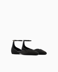 Inspired by an archival offering from the Prive collection, these satin ballerinas feature matching black rhinestones that illuminate the toe. An offering with feminine, slinky lines, with a comfortable inner heel and ankle strap, customised by the Giorgio Armani logo on the insole, inspired by the labels of the brand’s sophisticated pieces. Adjustable ankle strap with light gold-coloured plating Black lining Giorgio Armani logo label on the insole Inner heel Made in Italy Product Code: GW001821AF18807M0173