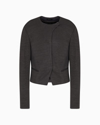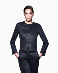 Short, slim-lined jacket made of viscose and linen jersey. The style elegantly drapes over the silhouette and features a concealed front zip closure, round neckline and two front welt pockets. A sophisticated style designed to add laid-back allure to daytime looks. Rounded neckline Concealed button closure Two welt pockets Cuffs with small slits Length: 51 cm Made in Italy Product Code: GW001053AF15501U8113