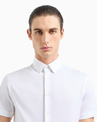 This slim-fit, cotton-jersey shirt adds comfort and sophisticated style to casual looks. It features short sleeves, a classic collar and exposed button placket. Product Code: 8WGCCZ1VJZ0711U0BN Details Composition 100% Cotton Slim fit Small collar leaf with metal stays Short sleeves Mother-of-pearl logo button closure Back darts Back yoke Made in Italy Fitting The model is 6' and is wearing size 41