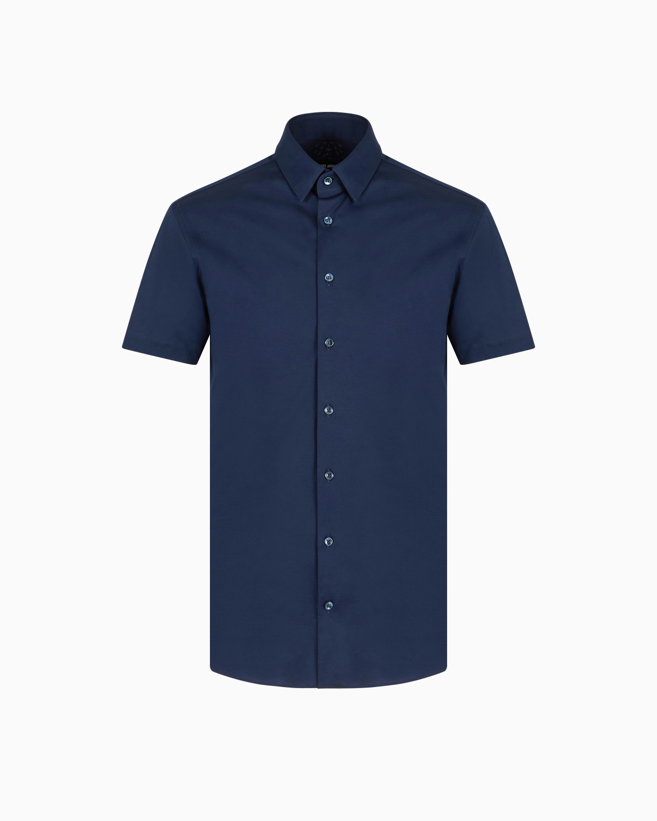 This slim-fit, cotton-jersey shirt adds comfort and sophisticated style to casual looks. It features short sleeves, a classic collar and exposed button placket. Product Code: 8WGCCZ1VJZ0711UBS7 Details Composition 100% Cotton Slim fit Small collar leaf with metal stays Short sleeves Mother-of-pearl logo button closure Back darts Back yoke Made in Italy Fitting The model is 6' and is wearing size 41
