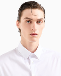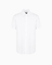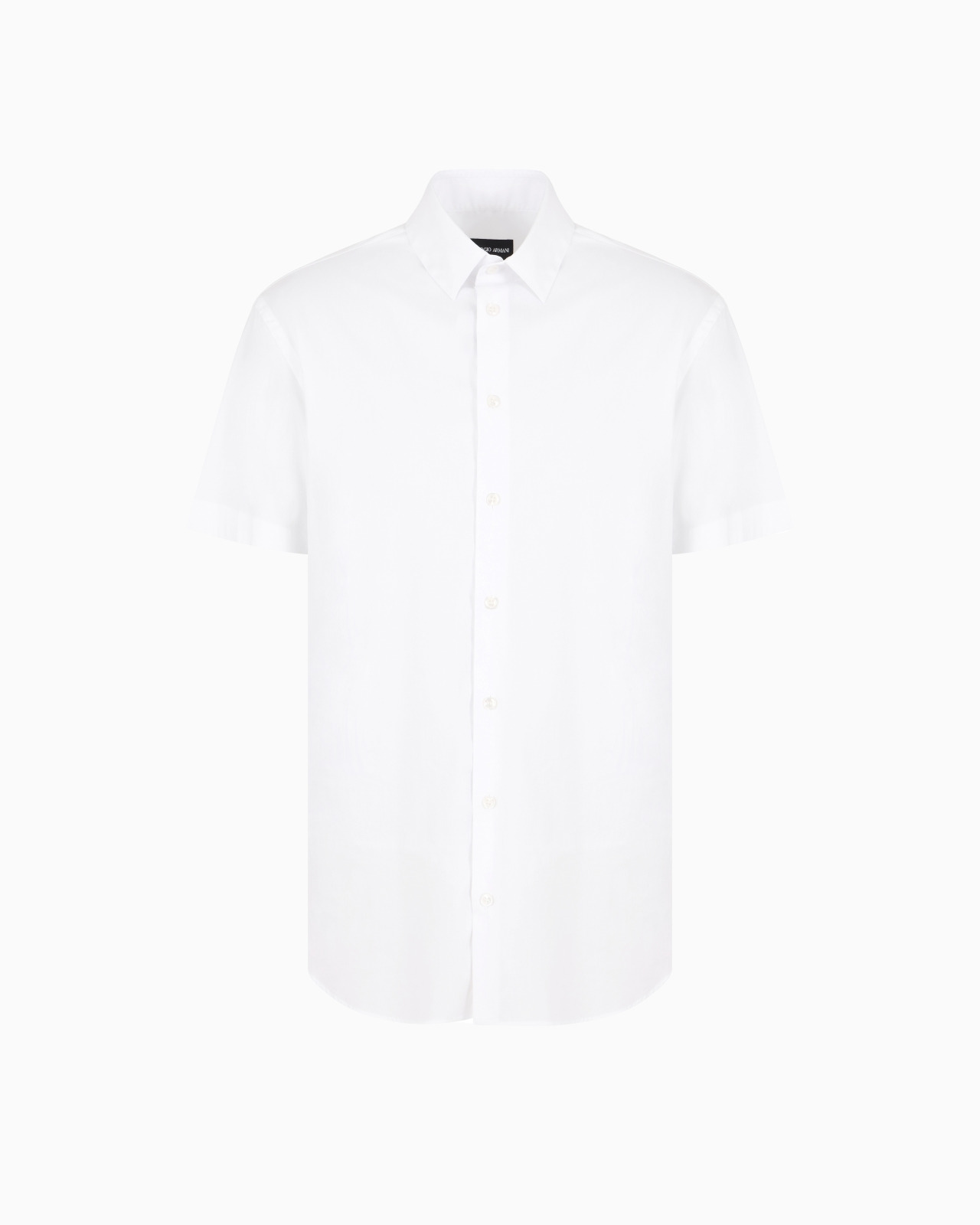 This regular-fit stretch-fabric shirt was designed for hot summer days, providing both comfort and sophisticated style. It features short sleeves, a classic collar and exposed button placket. Product Code: 8WGCCZ1VTZ5171U0BN Details Composition 75% Cotton 21% Polyamide 4% Elastane Slim fit Small collar leaves with metal collar stays Short sleeves Mother-of-pearl logo button closure Back darts Back yoke Made in Italy Fitting The model is 188 cm tall and is wearing size 40