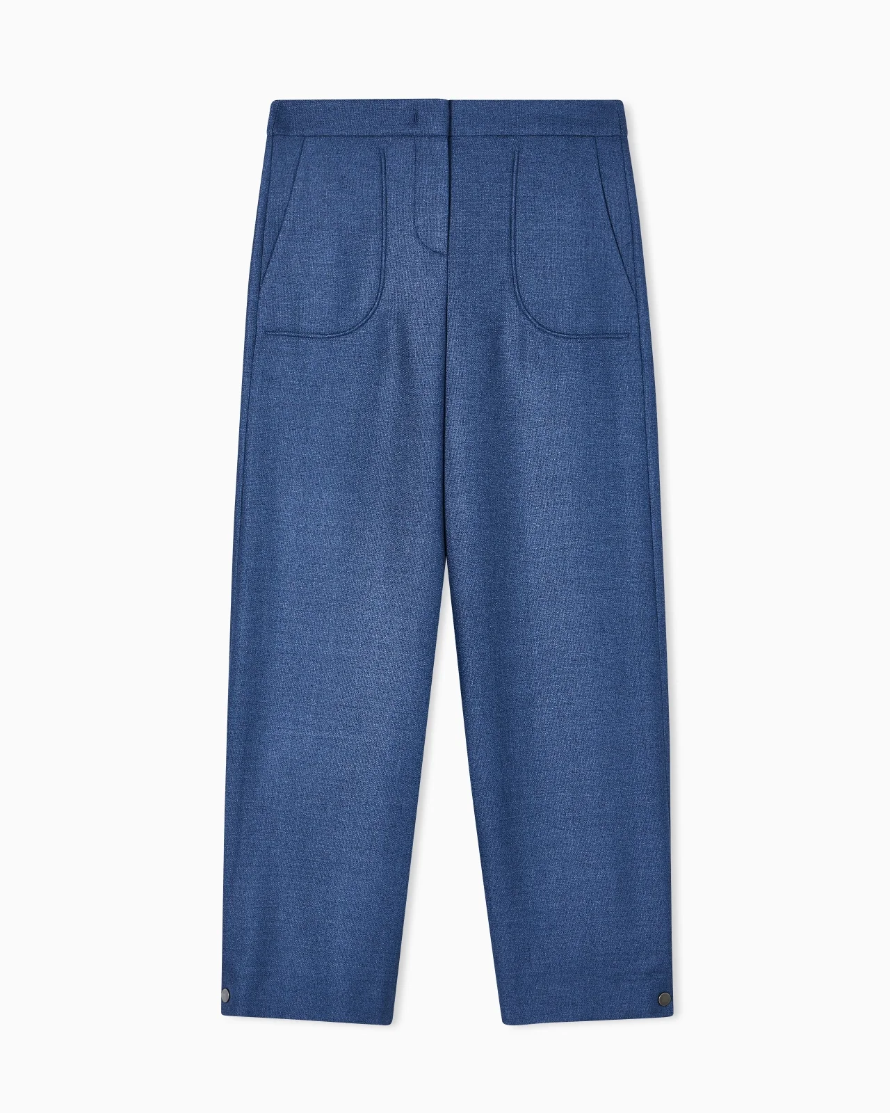 Straight-leg trousers with essential lines made of silk and wool. The style features a zip-and-button fastening, side patch pockets, an elasticated waist at the back and button detail at the bottom of the leg, which allows you to play with the width of the trousers. A piece with a relaxed feel, perfect for daytime looks teamed with the collection’s shirts. The piece is part of the New Normal selection, an offering that reinterprets the brand’s archive looks with a modern twist. Pieces in fluid shapes and with an androgynous flavour dress the feminine silhouette with elegance for day-to-night looks. This season it is presented in a natural colour palette with a sophisticated and authentic simplicity. Button and zip fastening Side patch pockets Ankle cuff with snap button Elasticated waist at the back Length: 98 cm Unlined Made in Italy Product Code: GW002604TE20034UB110