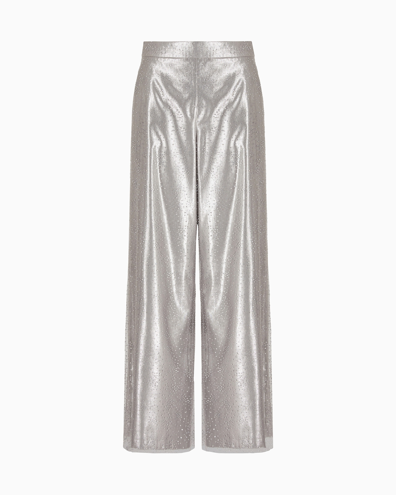 Silk cady wide-leg trousers in silk and tulle with rhinestone embroidery