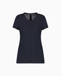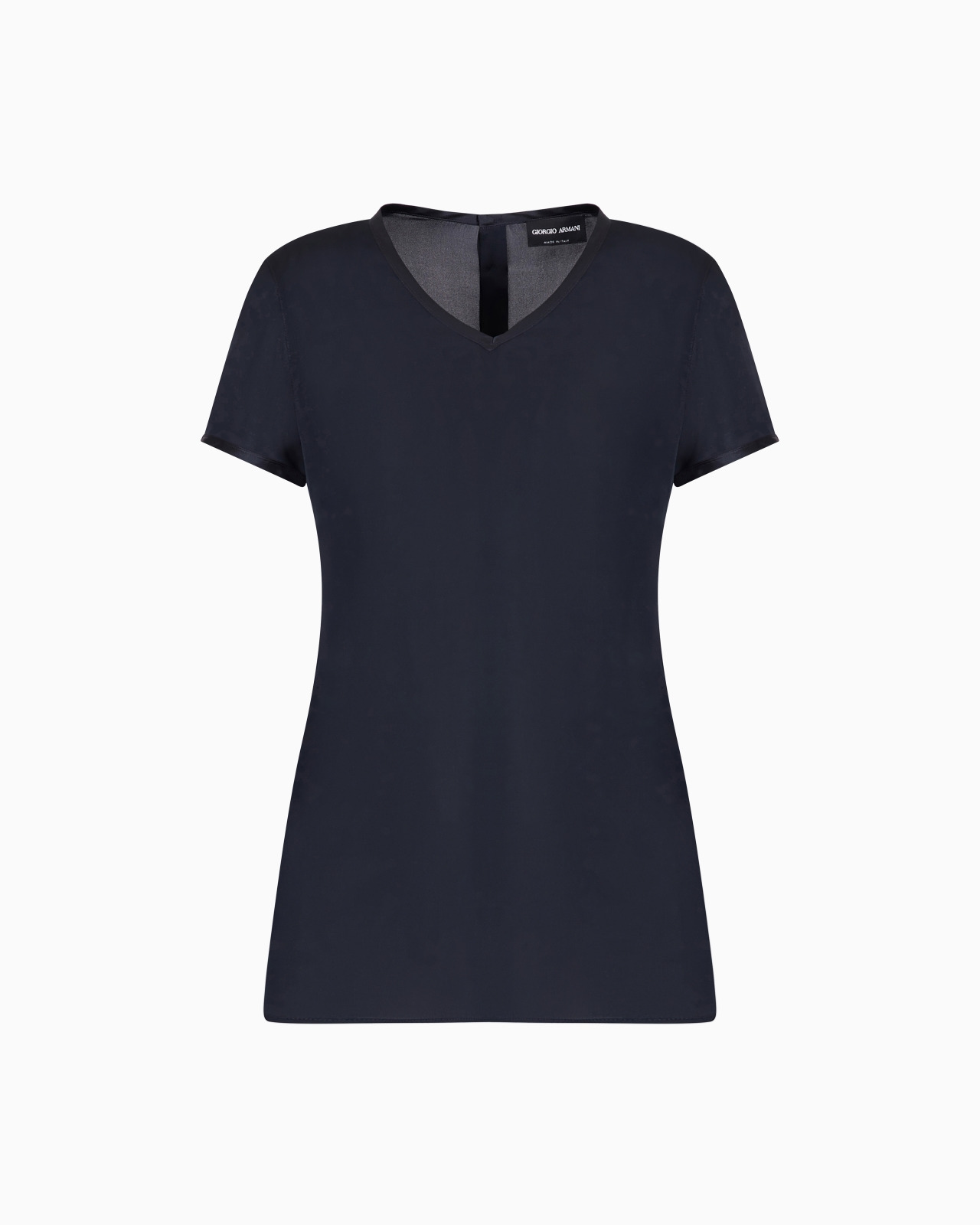 This blouse is the perfect combination of quality and studied details: simply designed, it’s an ideal and versatile garment for mixing and matching. Product Code: 8CHCCZ01TZ1361UBUL Details Composition 100% Silk Basic solid color V-neck Short sleeves Fitting The model is 177 cm and is wearing size 38