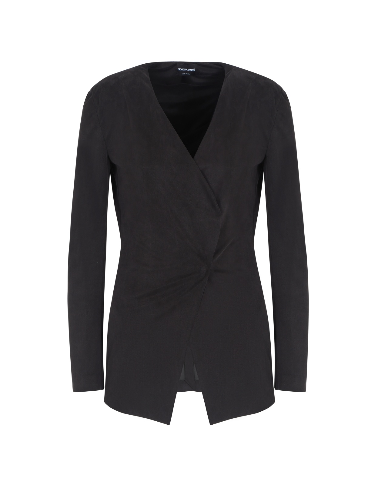 Jacket with flowing lines, made from cupro jersey interlock. The style is distinguished by its slim lapels and concealed button fastening. This extremely versatile garment features a slit at the centre-back that gives movement to the lines, making it an ideal complement to many looks. Single-breasted jacket Slim lapels Concealed button closure Central back vent Length: 70 cm Made in Italy Product Code: GW000910AF15057U8119