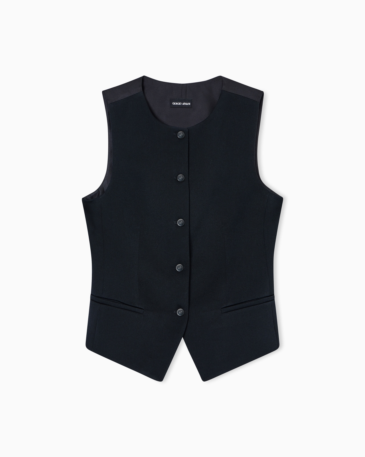 Single-breasted wool waistcoat, embellished with exposed metal buttons and welt pockets. Defined by a round neckline and front closure, the style has a clean, slightly contoured shape that elegantly dresses the silhouette. A classic, versatile piece that adds a touch of formal elegance to a range of looks. Single-breasted waistcoat Crew neck Front closure with gold-finish metal buttons Two small welt pockets Lined Made in Italy Product Code: GW001588TE10936UC001