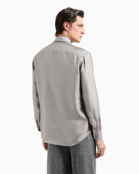This slim-fit shirt in silk twill comes in subtle, versatile shades. The style is defined by an Italian collar without stays, a concealed button fastening and a back yoke. A piece designed for evening wear, a must-have addition for the wardrobe of the elegant man. Product Code: GM001653TE111581U8053 Details Composition 100% Mulberry silk Slim fit Italian collar without stays Front closure with concealed buttons Cuffs with button and sleeve placket Back yoke Made in Italy
