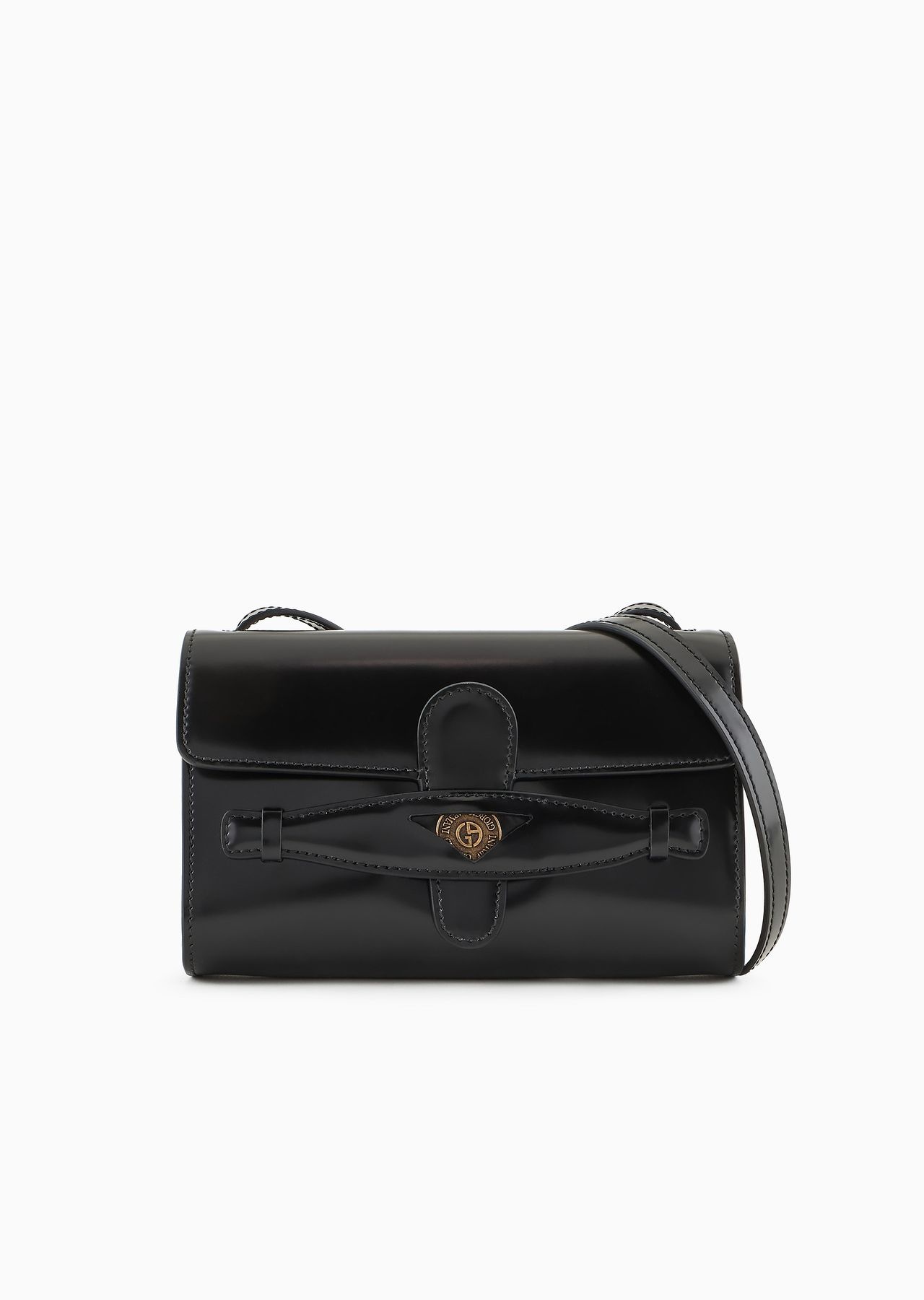 Off-duty style and retro inspiration for this small crossbody bag crafted from supple suede. The style, with an adjustable shoulder strap, features a penny loafer closure, illuminated by a coin detail customised by the logo. A compact, versatile accessory, perfect for holding just the essentials and embellishing many looks. Product Code: GW000284AF108771UC001 Details Composition 100% Calf-skin leather Closure with penny loafer detail Antique gold-finish metal coin detail with GA logo Two interior patch pockets Brushed leather adjustable shoulder strap with cap closure Measurements: 20 x 13 x 7 cm Made in Italy