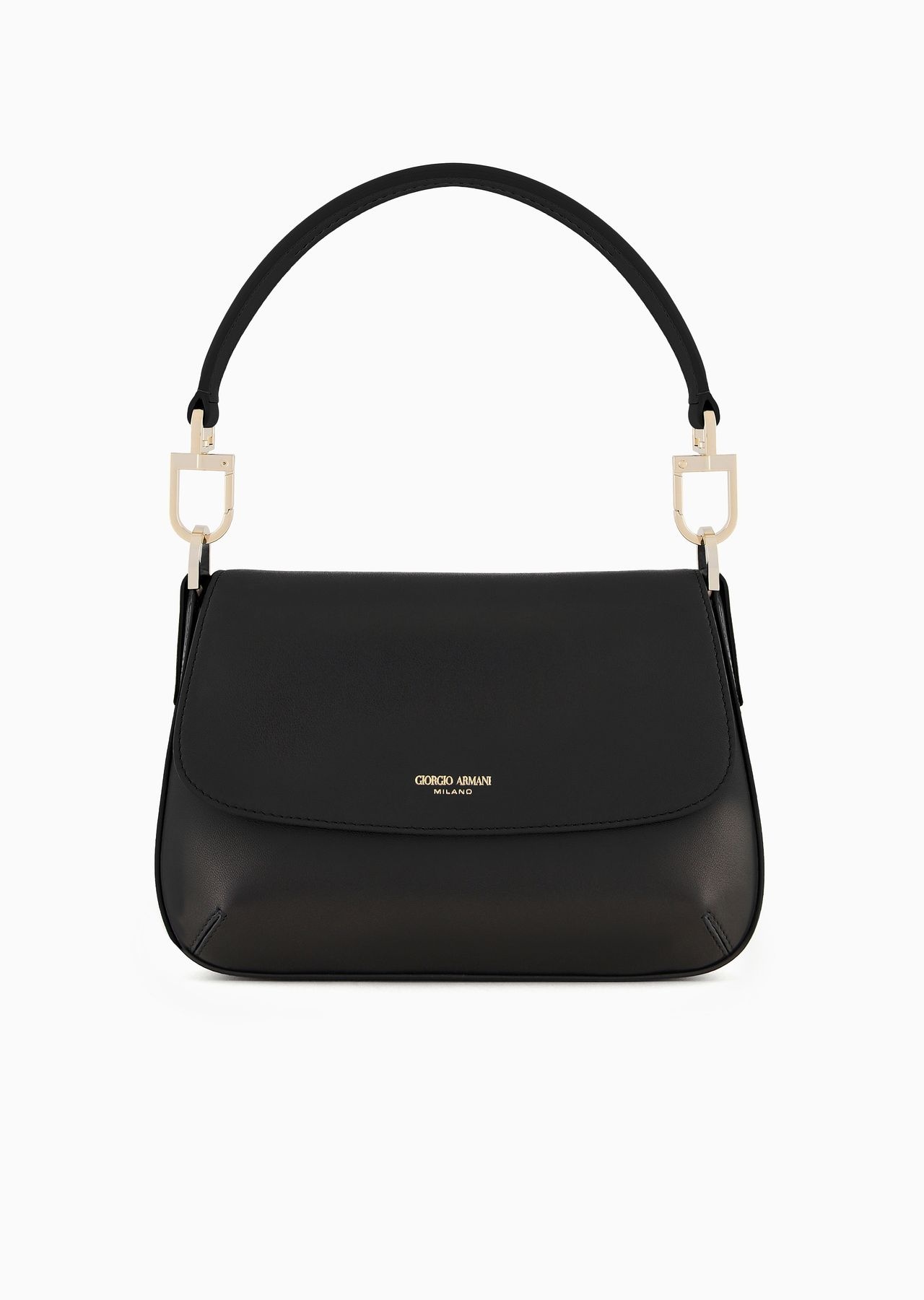 A new, sophisticated interpretation of the iconic la Prima bag created by Giorgio Armani in 1995, with a more relaxed shape. This small handbag made of nappa leather is reminiscent of the world of tailoring with its smooth, deconstructed lines, highlighted by stitching details that accentuate the smoothness beloved in the world of Armani ready-to-wear. Lit up by metal clips that allow for a quick change of shoulder strap for a cross-body option, this baguette bag encases a suede-lined interior with a zipped inner pocket, has patch pockets closed by a magnetic clasp and a convenient pocket on the back, perfect for holding a mobile phone. An exceptional accessory, in which every detail upholds the elegant and refined appeal of the brand’s iconic bag. Product Code: Y1B080YZW4A180001 Details Composition 100% Lambskin Flap closure with covered central magnetic button Nappa-leather handle with clip detachment Second nappa-leather shoulder strap for wearing two ways Lined with matching suede Outer pocket with zip Light gold-finish metal plating One exterior back pocket with press-stud closure Heat-stamped Giorgio Armani logo Measurements: 26.5 x 18.5 x 5.5 cm Made in Italy