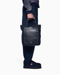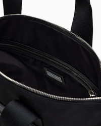 Convenient-sized shopper bag that combines form and function, designed to fit different needs. This style is created in nylon made from certified recycled material and is embellished with a front zip pocket made of matching pebbled leather. A versatile offering, with a well-organised interior. Double handles in webbing Zip closure Zipped front pocket in pebbled leather Heat-stamped Giorgio Armani logo Inner pocket with zip Measurements: 34 x 22 x 36 cm Made in Italy Product Code: GM001169AF14204UC001