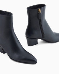 Ankle boots made of smooth calfskin, with a clean, essential shape. Featuring a slightly pointed toe, the style has a side zip closure and a distinctive contoured heel, which adds a sophisticated, glamorous touch. Elegant and versatile, a perfect offering for day-to-night wear. Slightly pointed style Side zip closure Contoured heel Heel height: 5.5 cm Made in Italy Product Code: GW002129AF19136UC001