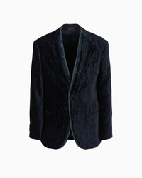 The ultimate symbol of elegance, the tuxedo jacket is a must-have of the refined male wardrobe. This single-breasted two-button style is made from lustrous velvet and embellished with a monochromatic rhinestone insert that illuminates the neckline. The garment is part of an exclusive capsule collection dedicated to special occasions, reflecting the iconic vision of elegance through the brand’s style codes. A sophisticated, timeless and elegant style in silk with geometric jacquard motifs and dense, luminous velvets that create an alluring play of light. Product Code: 4SGGG188T05291FBWZ Details Composition 80% Viscose 20% Mulberry silk Soho line tuxedo jacket Notched lapels Scarf-effect insert covered in matching rhinestones Single-breasted buttoned closure Two welt pockets Breast welt pocket Covered buttons at the cuffs Lined Two internal pockets Length: 73.5 cm Made in Italy