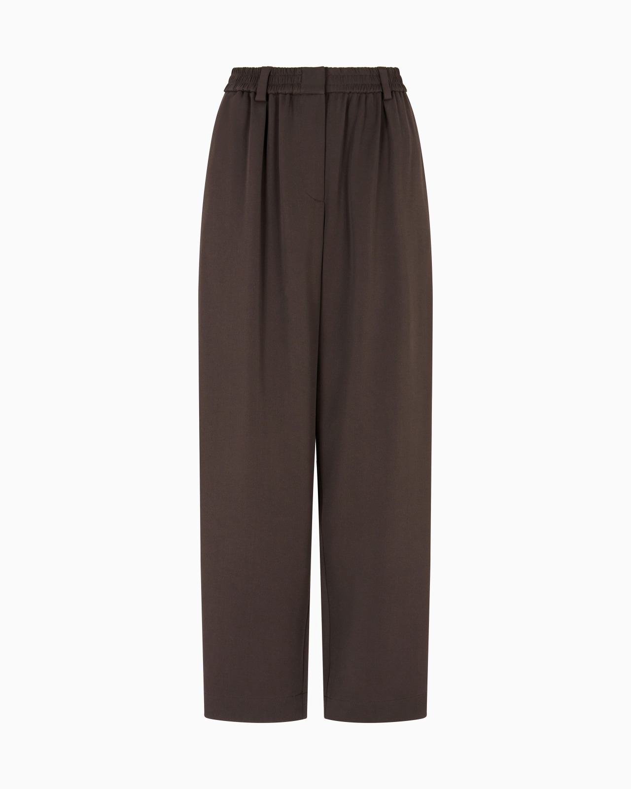Straight trousers made of silk double georgette, a fabric distinguished by its fluidity and lightness, with a slightly crinkly feel and subtle opaqueness. Featuring stitched turn-up, side pockets, and a comfortable elasticated waistband with loops, the style elegantly completes daytime looks with a laid-back feel. Straight trousers Elasticated waistband with loops Button and zip closure Two side pockets Two back welt pockets Unlined Made in Italy Product Code: GW001567TE11063M6002