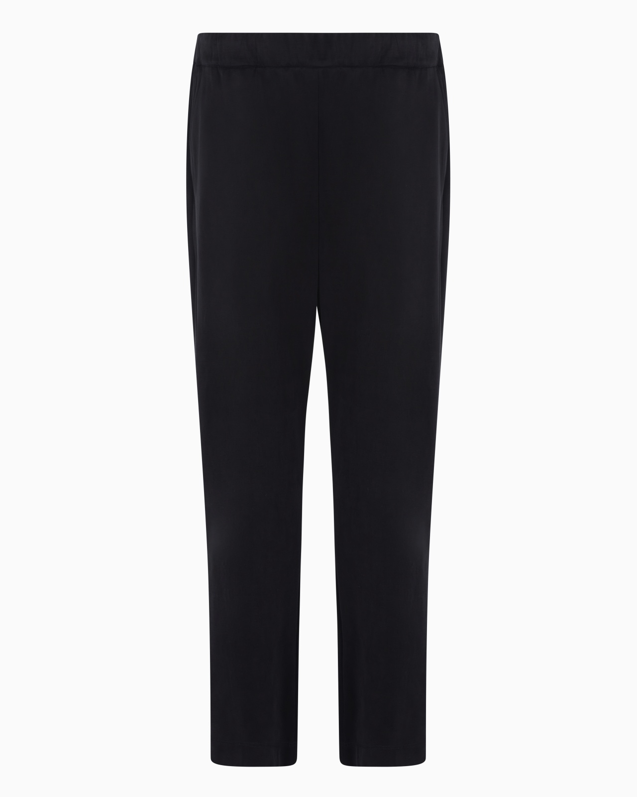 Flat-front trousers made of stretch cotton and cupro that feels smooth and silky. With an elasticated waistband and side pockets, the style is distinguished by a comfortable fit that follows the body’s movements without restriction. A piece with a modern, relaxed cut, the perfect match for a multitude of looks. Flat-front trousers Elasticated waistband Two side pockets Back pocket with button Cuff width: 24 cm Made in Italy Product Code: GM001241TE13903UC001