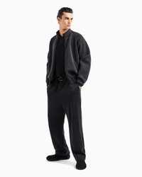 STRETCH COTTON AND CUPRO FLAT-FRONT TROUSERS