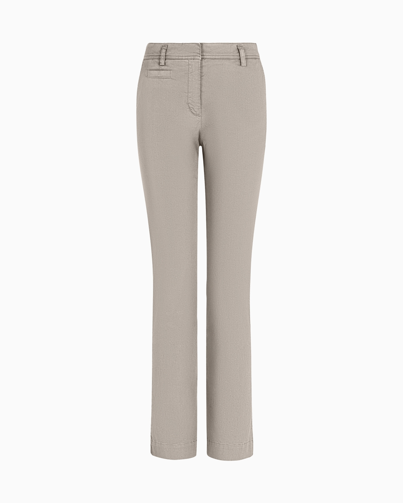 Chinos made from stretch cotton in the collection’s colour palette. The style, with a belt and a zip and button closure, is distinguished by its sportswear attitude and comfortable fit. A versatile, feminine style that is perfect in a wide array of looks. Product Code: 3SHPP0UXT03B31U8KJ Details Composition 98% Cotton 2% Elastane Waistband and belt loops Faced placket with zip closure Single front welt pocket Two small back pockets Hem width: 17 cm Made in Italy