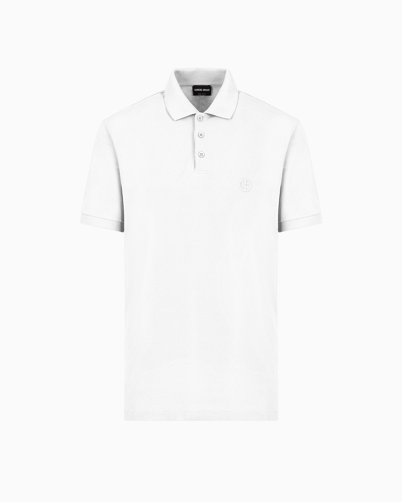 This collection is partially characterised by a laid-back style, as embodied by this slightly stretch-cotton polo shirt. It is a minimalist, versatile garment that adapts to various looks, completing them with Giorgio Armani’s unmistakable evergreen style. Product Code: 8NSF70SJCNZ1U090 Details Composition 97% Cotton 3% Elastane Three-button collar Short sleeves Embroidered, monochromatic GA logo on the chest Made in Italy Fitting The model is 188 cm tall and is wearing size 48/M
