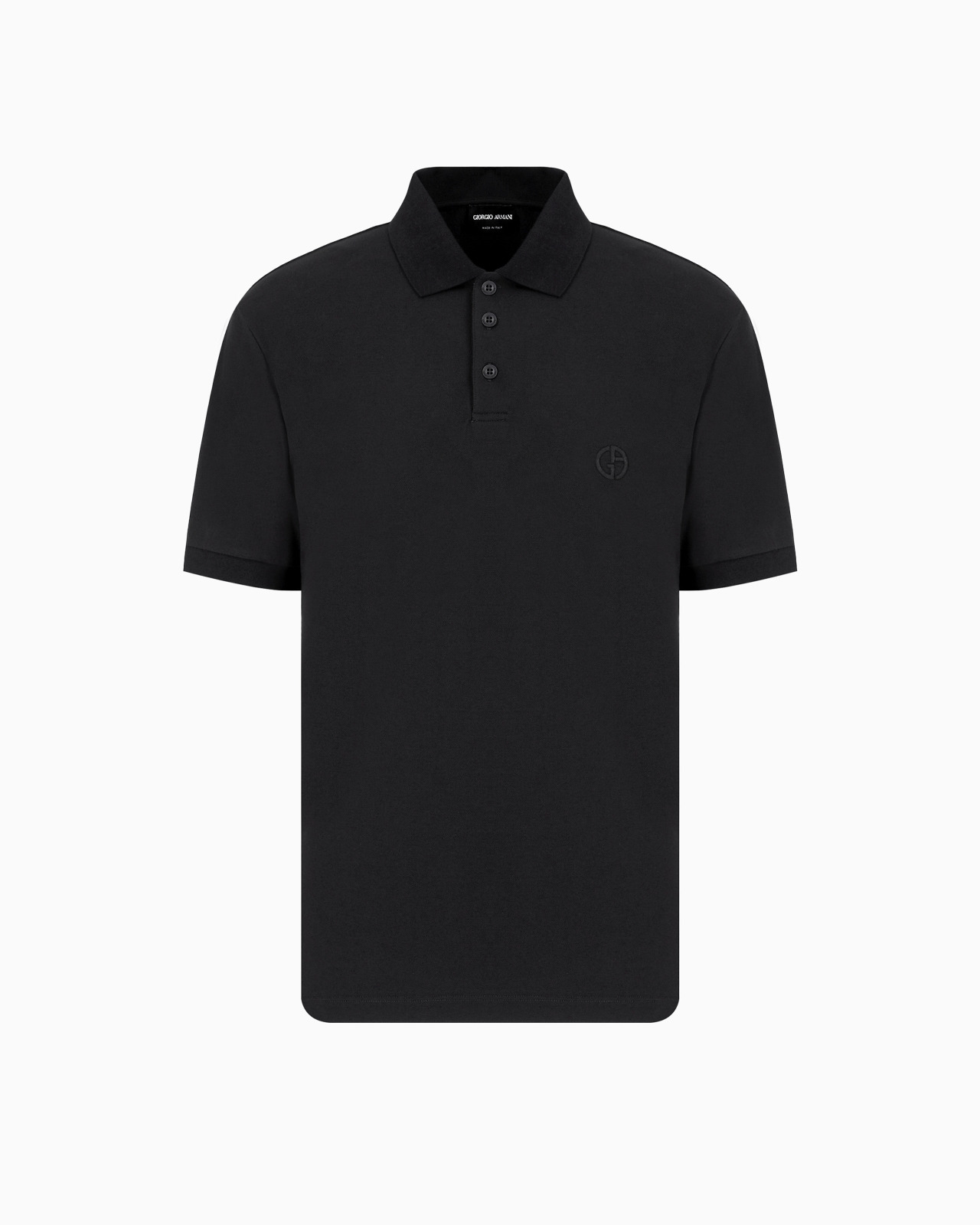 Essential and versatile, this short-sleeved polo shirt stands out with its matching iconic monogram logo embroidered on the chest. Made from stretch-cotton pique, it is a wardrobe staple for the stylish man. Perfect for effortless looks. Product Code: 8NSF70SJCNZ1UC99 Details Composition 97% Cotton 3% Elastane Three-button collar Short sleeves Matching, embroidered GA logo on the chest Made in Italy Fitting The model is 188 cm tall and is wearing size 48/M