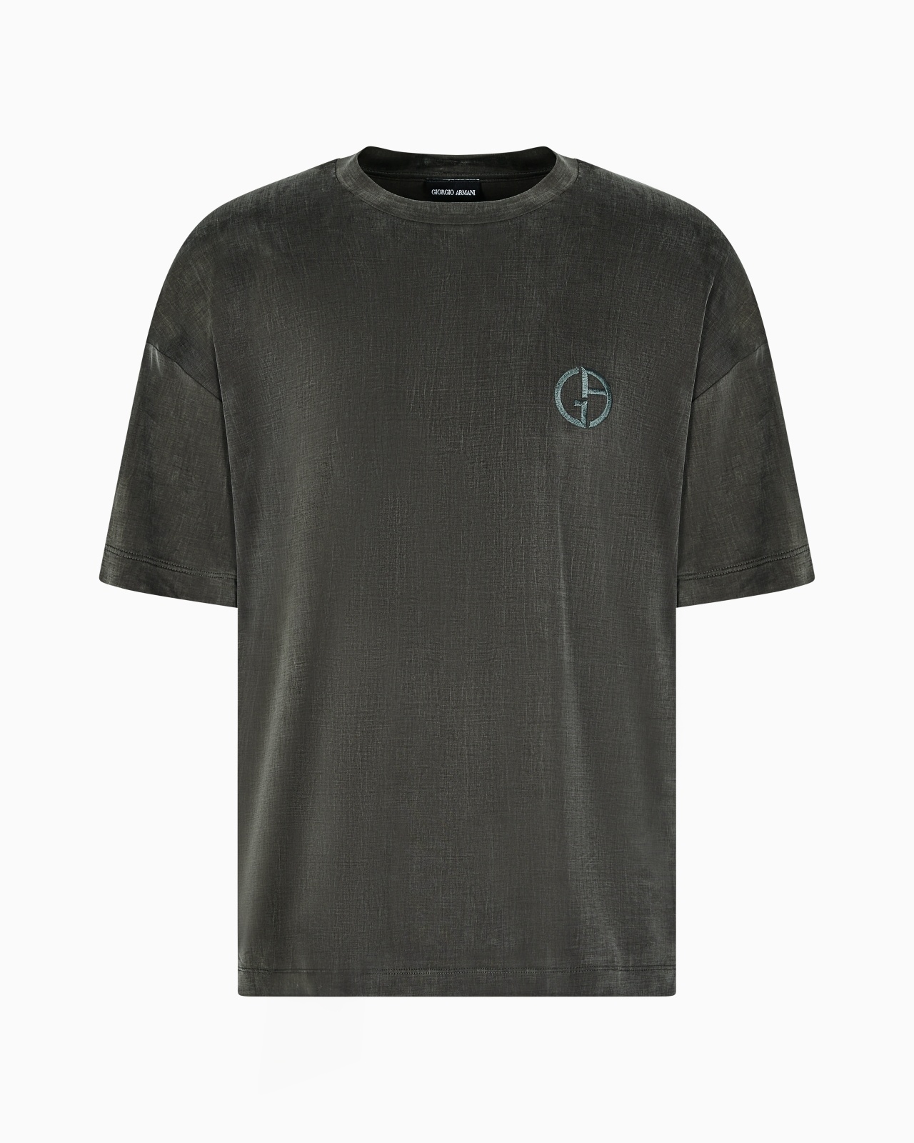 An oversized, unstructured fit defines this crew-neck T-shirt made from stretch cupro with a soft, silky feel. The matching embroidered GA logo on the chest makes the clean, essential style recognisable. A staple item designed to be the perfect complement for casual daytime looks. Oversized fit Crew neck Short sleeves with dropped shoulders Matching, embroidered GA logo on the chest Made in Italy Product Code: GM001246TE13613UB001