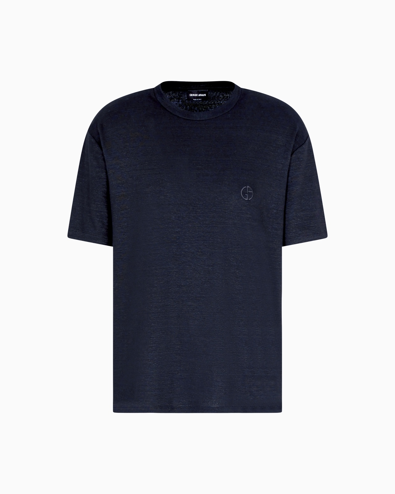 Cosy stretch linen crew-neck T-shirt defined by a comfortable fit. An extremely versatile, fresh style, customised with a matching embroidered GA logo on the chest, perfect for casual, relaxed looks. Crew neck Short sleeves Customised with matching embroidered GA logo on the chest Made in Italy Product Code: GM001099TE13875UC001
