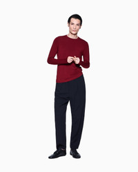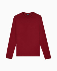 Long-sleeved crew-neck jumper made from stretch-viscose bamboo jersey, an iconic fabric of the brand that stands out for its cosy, comfortable feel and perfect fit. Personally chosen and worn by Giorgio Armani as the perfect complement to numerous looks, a hallmark garment of a sleek and highly versatile elegance. Crew neck Long sleeves Rolled, lapped-seam collar and cuffs Made in Italy Product Code: 3GST51SJP4ZU5078