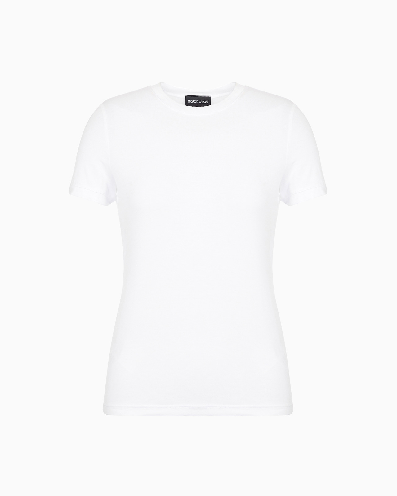 An emblem of essential elegance and always understated, this T-shirt displays the iconic Giorgio Armani style through its simplicity. Made in stretch viscose jersey, this T-shirt is distinguished by its perfect fit. The garment is completed by the round neckline and seamless contours. Product Code: 8NAM95AJP4Z1U090 Details Composition 90% Viscose 10% Elastane Jersey Round collar Short sleeves Fitting The model is 177 cm and is wearing size 38