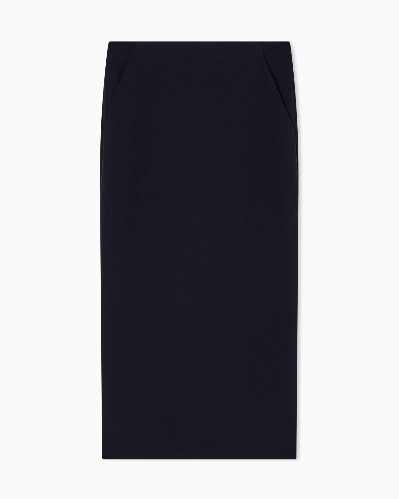 STRETCH, WOOL CRÊPE MIDI SKIRT