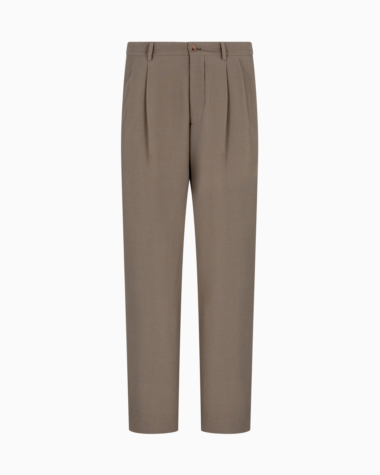 STRETCH WOOL SEERSUCKER DOUBLE-PLEAT TROUSERS