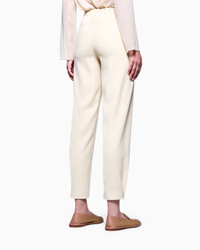 Straight trousers made from technical cady that feel cosy and silky. The design with an essential construction, elasticated waistband, hook and zip closure and side pockets, is embellished with a small button detail at the hem. A fresh and versatile offering for a casual look. Smooth waistband Concealed zip-and-hook closure Two slant pockets Two back patch pockets Button detail at the ankle cuff Unlined Made in Italy Product Code: GW000768TE10832U1115