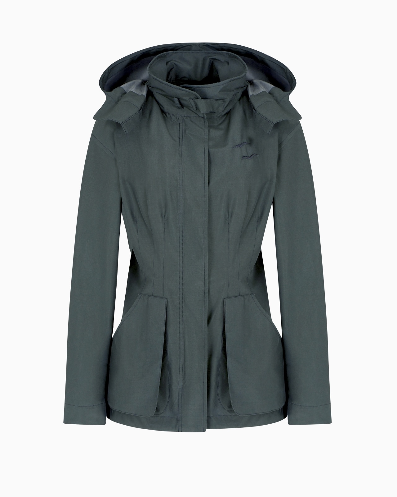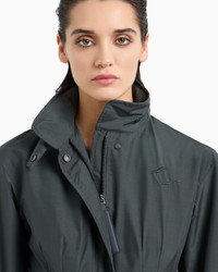Effortless, athletic attitude for this hooded pea coat made from technical silk. This style features a concealed zip fastening and two large patch pockets on the front. The detail of the stitching at the waistline and matching-tone embroidery on the chest with the urban tiger motif complete the piece with a feminine touch. Attached hood Concealed front zip and collar strap closure Two large patch pockets Matching stitching at the waist Lined Length: 68 cm Made in Italy Product Code: GW000921TE14108U8110