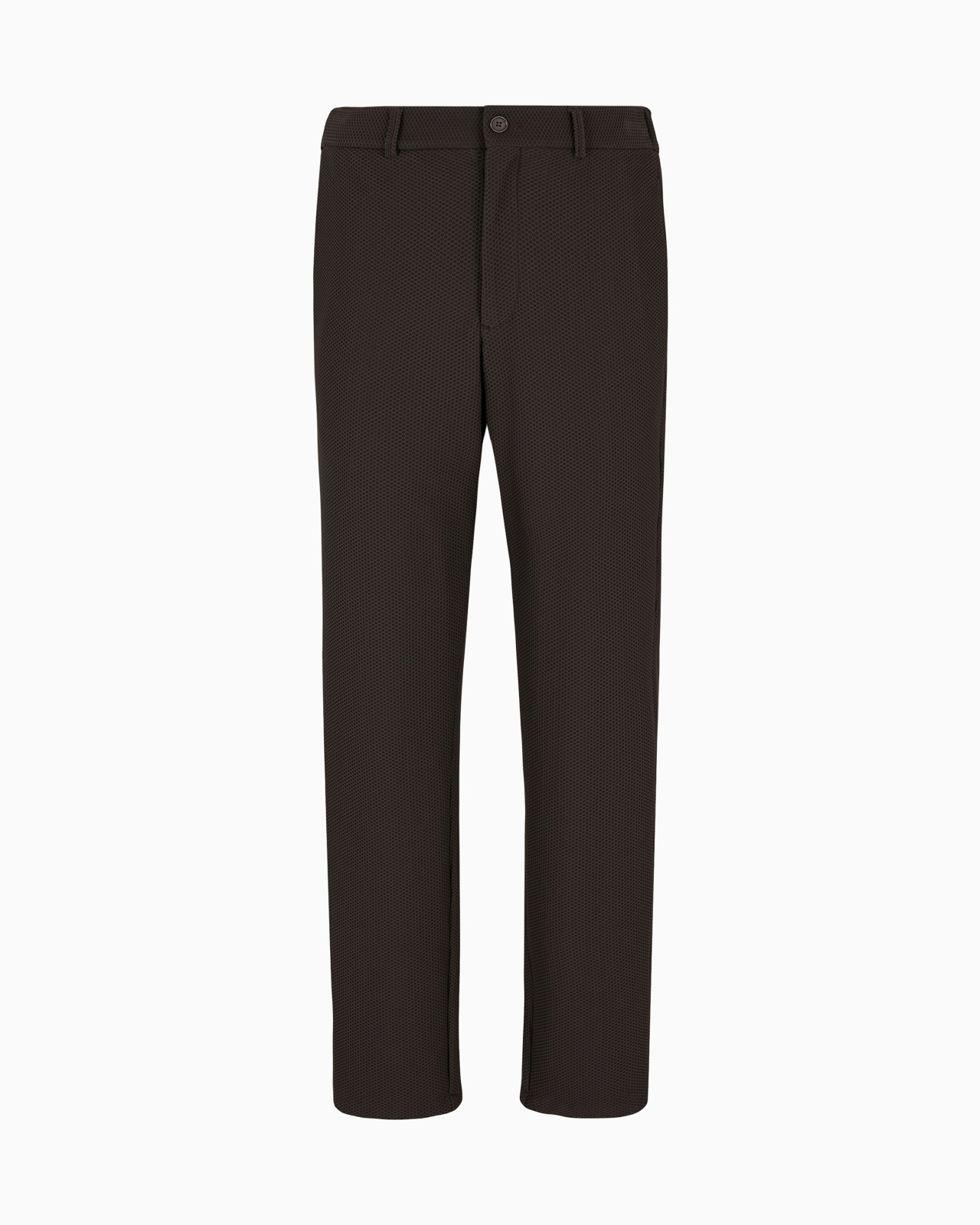 These casual men’s trousers are defined by a fluid cut, unrestricted fit, cosy fabric and laid-back allure. This flat-front style with elasticated waistband and comfortable fit is made from technical waffle and can be styled to create a wide variety of daytime outfits. Product Code: GM000261TE100451U6031 Details Composition 80% Polyamide 20% Elastane Flat-front style Elasticated waist Zip closure Two side pockets Two buttoned back pockets Cuff width: 18 cm Made in Italy Fitting The model is 188 cm tall and is wearing size 48 / M