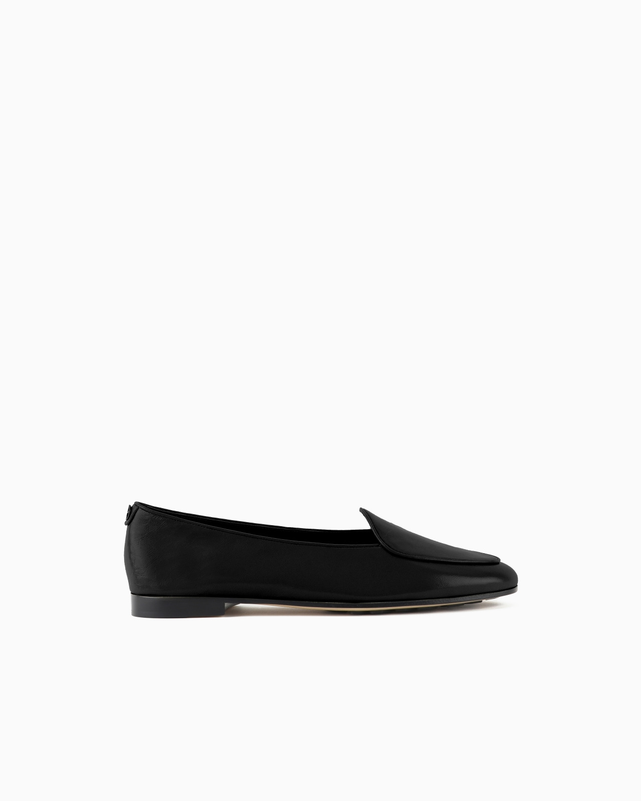 These loafers with an essential construction made of textured patent leather will elegantly accompany everyday looks. The style stands out with a topstitched vamp and leather sole with rubber inserts. A versatile, feminine offering, a great representative of Armani style. Topstitched front vamp Leather soles with rubber inserts Made in Italy Product Code: X1J120XF79100002