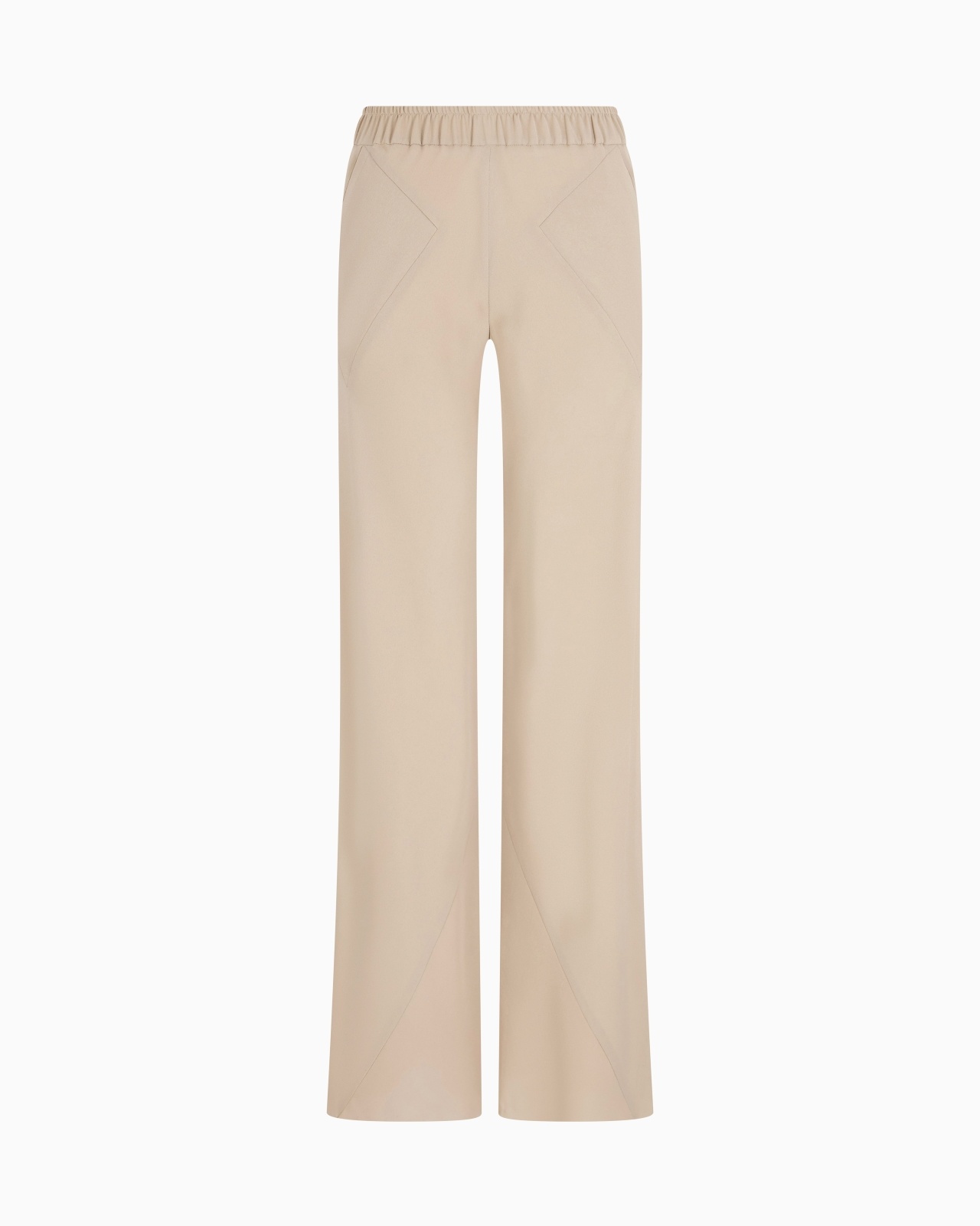 Flared, fluid straight trousers in triple silk georgette available in the collection colour palette. With a comfortable elasticated waist and geometric-cut front pockets, the relaxed, casual style lends itself to numerous perfect daytime combinations. Elasticated waist Two side pockets Matching stitching at the sides Unlined Made in Italy Product Code: GW000859TE10814U8048