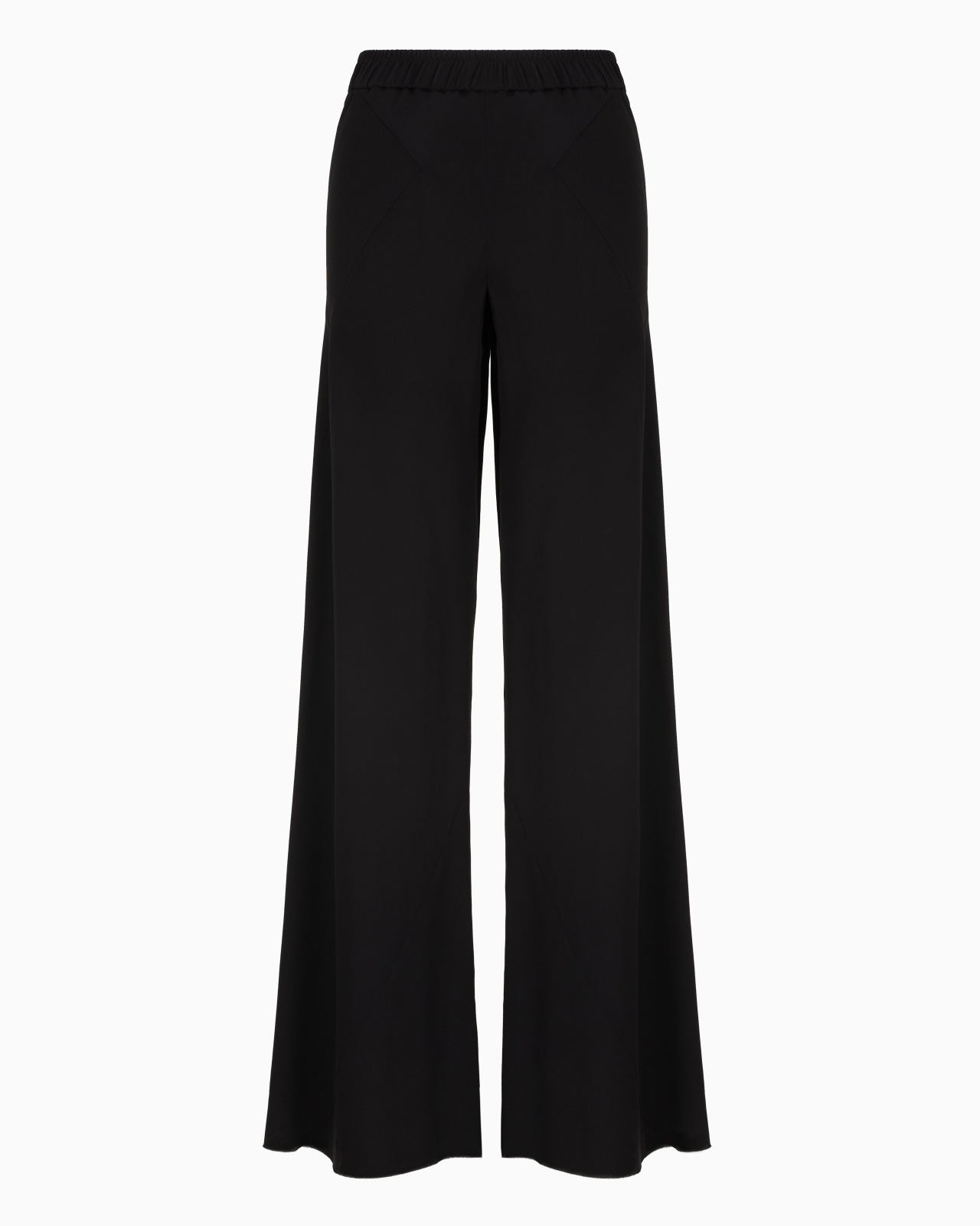 Flared, fluid straight trousers in triple silk georgette available in the collection colour palette. With a comfortable elasticated waist and geometric-cut front pockets, the relaxed, casual style lends itself to numerous perfect daytime combinations. Elasticated waist Two side pockets Matching stitching at the sides Unlined Made in Italy Product Code: GW000859TE10814UC001