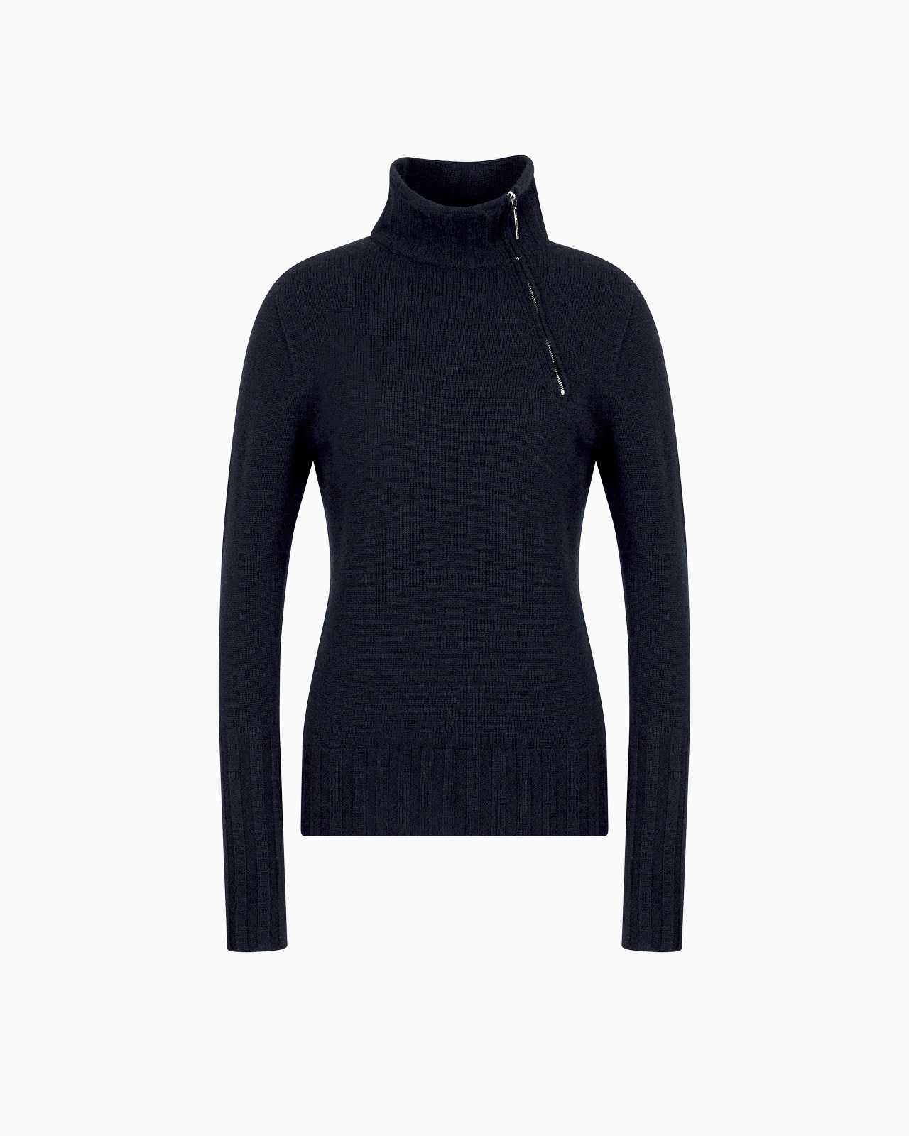 Long-sleeved mock neck jumper made from pure cashmere with a relaxed, comfortable fit. The simple lines of this item make it perfect for pairing with the collection’s jackets or with trousers and skirts for elegant yet versatile looks. Fineness: 12 Mock neck Long sleeves Gold metal GA logo on the back of the collar Made in Italy Product Code: 8NAMA5AMB5ZUBSG
