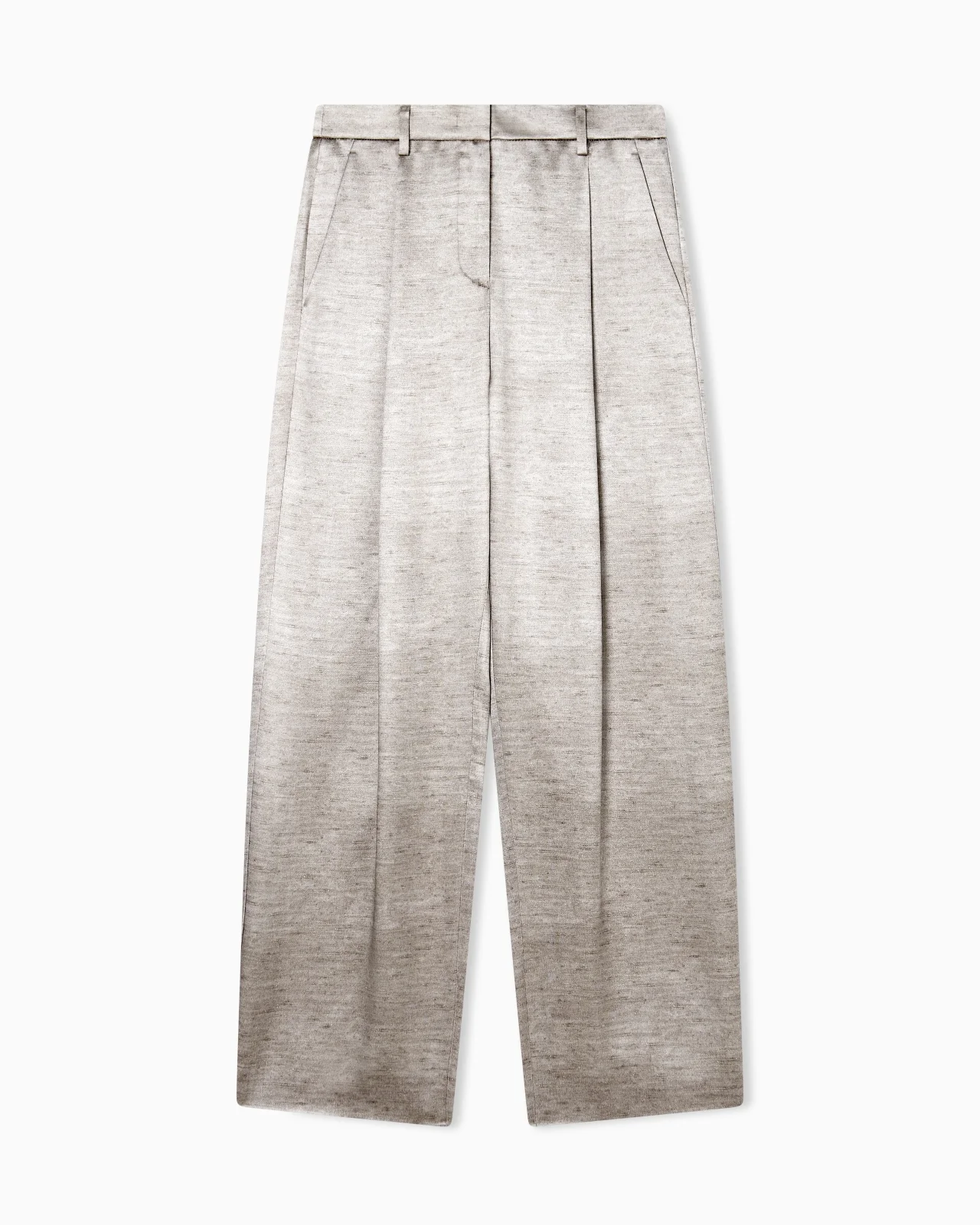 Single-pleat trousers with flowing lines made from luxurious Tussah silk. A versatile style perfect for teaming with the collection jacket for an elegant and feminine complete look. The piece is part of the New Normal selection, an offering that reinterprets the brand’s archive looks with a modern twist. Pieces in fluid shapes and with an androgynous flavour dress the feminine silhouette with elegance for day-to-night looks. This season it is presented in a natural colour palette with a sophisticated and authentic simplicity. Single-pleat trousers Waistband with belt loops Button and zip fastening Two side pockets Single back welt pocket Length: 115 cm Made in Italy Product Code: GW002793TE20145M6304