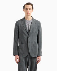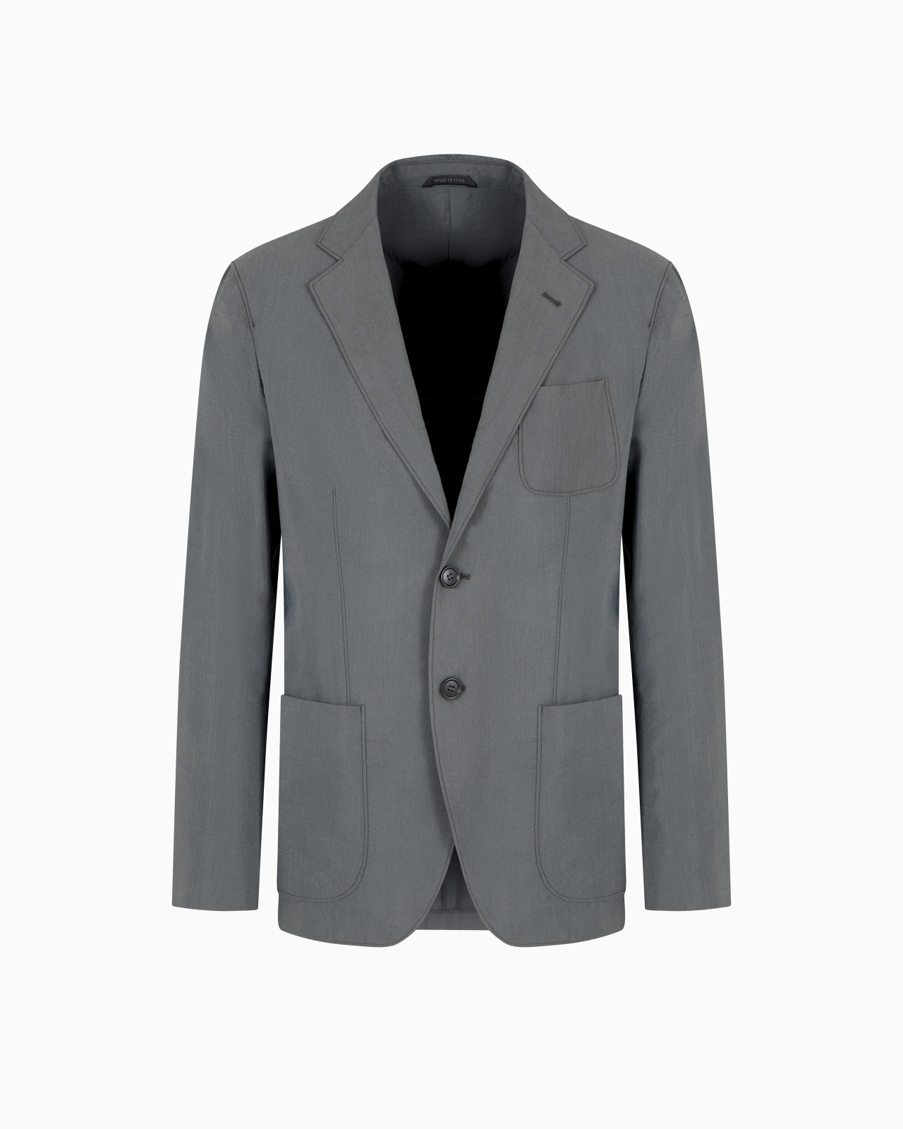 Single-breasted jacket from the Upton Line with a streamlined, completely deconstructed fit: a characteristic that gives the style the iconic fluid lines that are so representative of Giorgio Armani style. This two-button style is made from washed silk in a distinctive cannete weave and features notched lapels, patch pockets and a breast pocket. Upton Line jacket Notched lapels Two-buttoned, single-breasted closure Two patch pockets Breast patch pocket Button cuffs Two small internal buttoned pockets Unlined Length: 73 cm Made in Italy Product Code: GM000140TE10081U8167